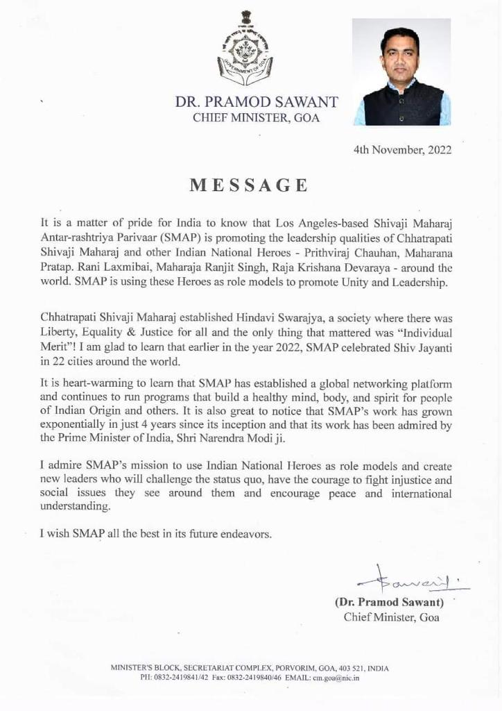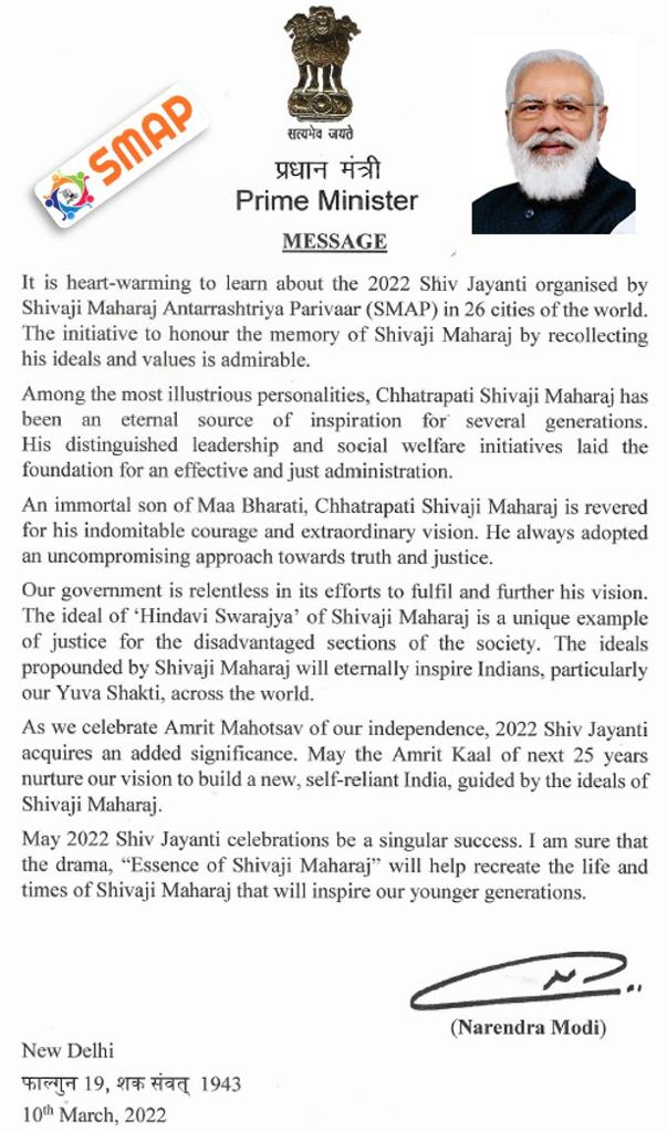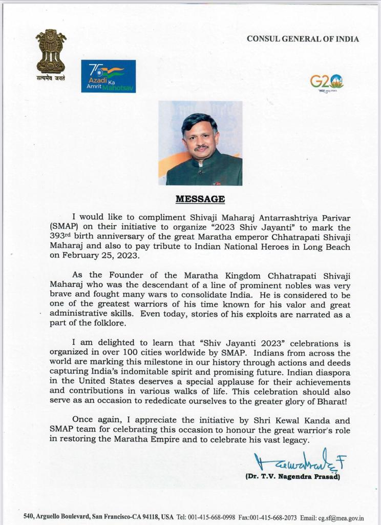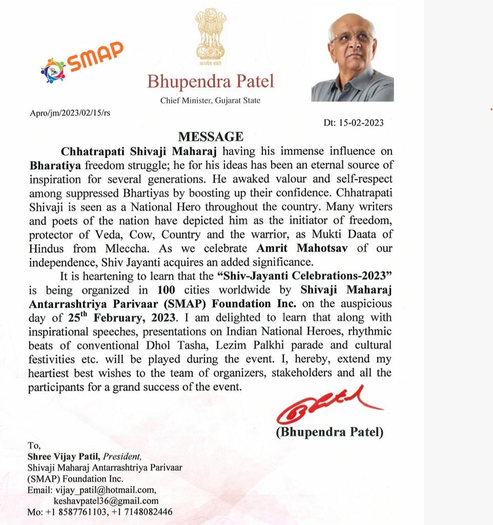 Namaste everyone! Shivaji Maharaj America Parivaar (SMAP) is a very unique initiative that promotes Indian Heritage in America! …and the world is noticing it. Pls see the endorsement by the Honorable Prof. Dr. Vishwanath Karad.